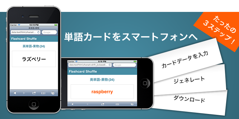 Flashcard Shuffle は iPhone や Android などのスマートフォン端末向けの無料の単語カード・暗記カードアプリケーションです。
